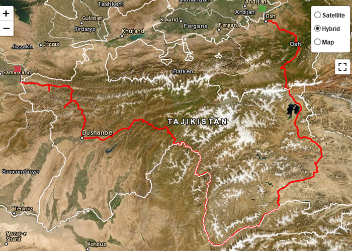 C’est un itinéraire qui démarre d’Osh (Kirghizistan), qui nous permettrait de voir le pic Lénine coté du Kirghizistan, et faire aussi une étape à Saritash, village kirghiz situé à 3000 m d’altitude, une étape importante d’approvisionnement soit pour aller en Chine à l’Est, soit au Tadjikistan au Sud.