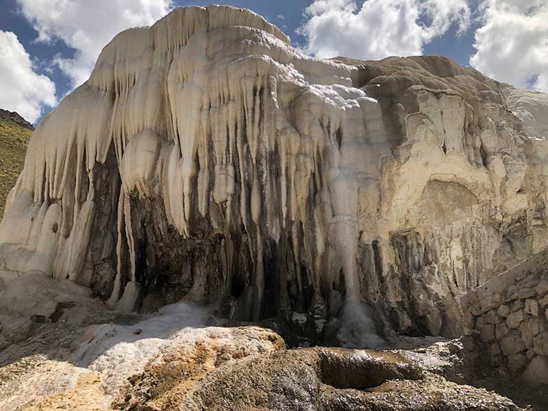 Nous partons pour un lieu dit Garm Tchasma (Source chaude), endroit où l’on peut réaliser des cures. Un grand bâtiment de station thermale utilisé principalement par les locaux. Impressionnant le geyser, mais personnellement je préfère la source d’hier.