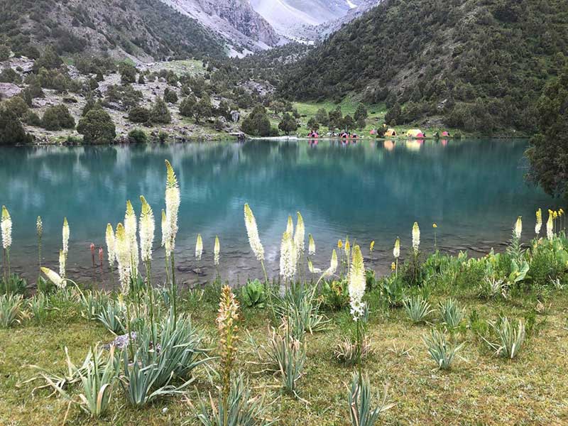 Autour d’Iskandarkoul ainsi qu’au village de Sarytag, nous avons pu faire de belles randonnées, qui nous ont amenés à faire une rencontre inattendue dans le hameau des bergers. Nous voyant arriver de loin vers leur camp, des femmes bergères nous invitent à venir partager les offrandes qu’elles nous avaient préparées : yaourt, pain, chocolat, bonbons... tout ce qu’elles avaient en leur possession à manger ! Moi ouzbek, je suis habitué un peu à ce genre d’accueil, mais les amis français visiblement n’en revenaient pas. Le peuple Tadjik quel que soit le lieu, au Pamir ou dans les monts Fanskie ont le même sens de l’hospitalité́ une tradition nomade qui ne s’est jamais perdue.