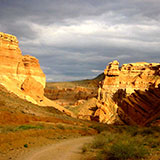 Depart en excursion à quelques 200 km à l’Est d’Almaty, dans le parc national Charyn où se trouve un grand canyon excavé et formé par la rivière Charyn fracassant des monts Celeste,Tian Shan, et qui évoque curieusementt celui du Colorado : dans ces grands étendus kazakhs, un scène sélénite de steppes ébréchées, dont la partie la plus étonnante, surnomée «Vallée des Châteaux» dévoile des structurations rocheuses aux couleurs épatantes.