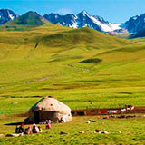 La richesse du Kirghizistan réside dans ses somptueux paysages, sa nature presque intacte et ses traditions de nomades. Encadré par de grandes chaînes de montagnes (les Tian Shan et les Pamir Altaï), c'est un pays aux sommets vertigineux, aux vallées encaissées et aux pâturages d'altitude où les nomades khirghizes, habitant dans des yourtes, élèvent encore leurs chevaux en respectant les traditions ancestrales. Cette belle randonnée au coeur de Tian Chan vous permettra de faire une approche plus pres aux traditions nomades avec nombreuses rencontres et ainsi vous découvrirez les traces des anciens caravansérails et le Coeur de la route de la Soie.