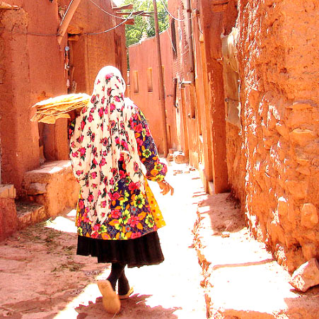 Départ pour Kāchān. Sur le chemin visite du village d’Abyāneh qui se caractérise par la couleur ocre de ses maisons. Le village est également connu pour les couleurs vives et bariolées des costumes traditionnels portés par les femmes du village, dont les origines sont très anciennes. Une forteresse Sassanide surplombe le village. Dîner et nuit à l’hôtel.
